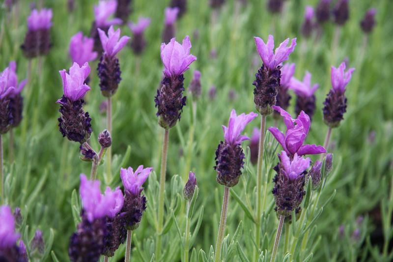 A stunning lavender with a mass of pale mauve flowers carried on long stalks. Each flower head is topped with a tuft of darker purple petals (actually bracts) which emerge like butterfly wings and flutter in the breeze. The wonderful scented flowers spikes and aromatic grey-green leaves are also a great attraction for bees and other nectar-loving insects so suited to a wildlife garden. This is an early flowering variety which can prolong the season if planted with the later flowering English Lavenders. Ideal for group planting, use in mixed borders or for container planting. Ideal in hot dry conditions.