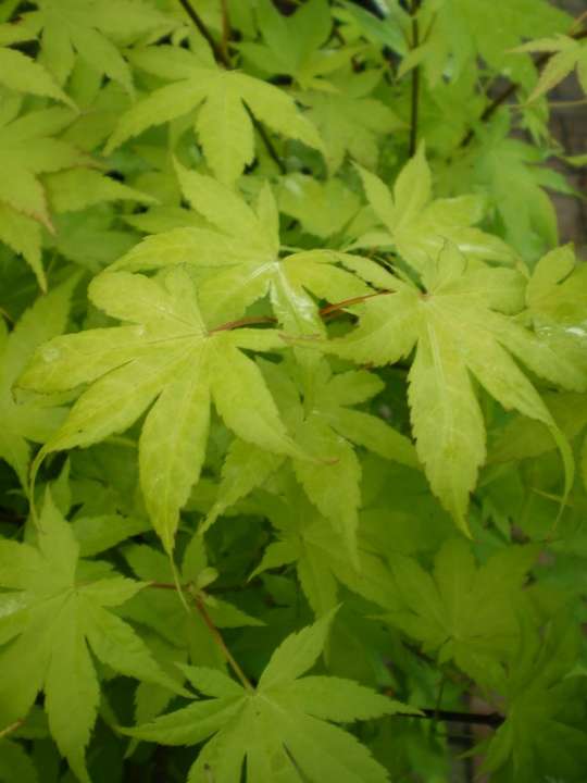A small, deciduous tree with a rounded habit. The leaves emerge golden yellow / orange changing to lime green in the summer months to yellow leaves turning golden to scarlet red in autumn. This particular lime green leaved Acer is less prone to burn in heat and full sun. Height up to 1.8 metres.