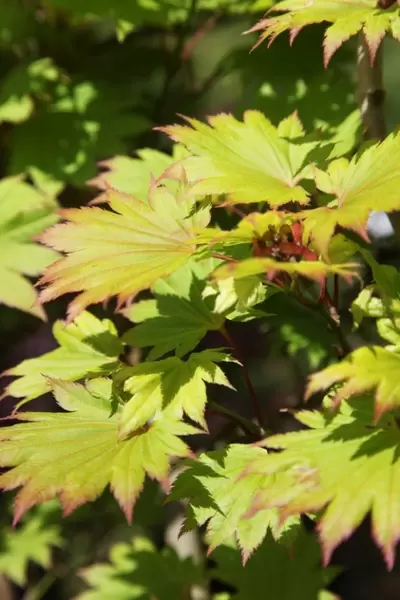Golden Full Moon Maple is a bit of a show stopper. The foliage is a stunning yellow to lime green changing to rich orange - red in the autumn. Slow growing with a rounded, broadly spreading habit. Bright crimson flowers in spring. The best foliage colour is achieved when planted in a sunny position. Height and spread 4-6m