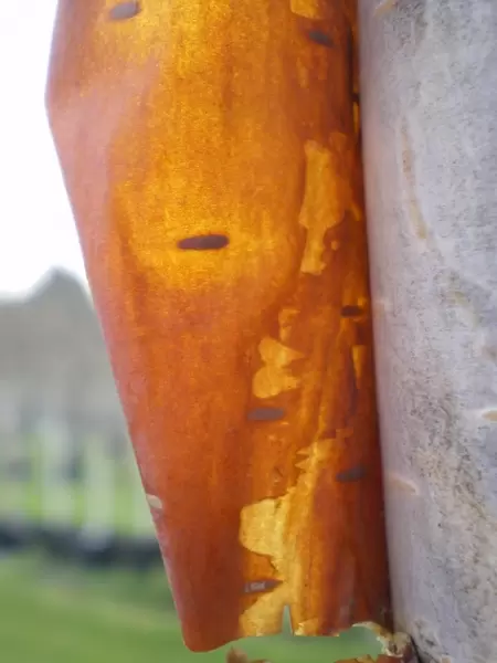 Betula albosinensis ‘Fascination’ - Smaller leaved than most Betula with orange-red coloured bark that peels when the tree is young and ages to white as the tree matures. Green yellow catkins in the spring and fantastic yellow autumn foliage colour. Pyramidal shape with weeping branches. Height 8-10m
