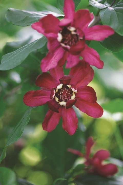 - Calycanthus ‘Aphrodite’. A stunning plant that has gained in popularity over recent years. Very hardy plant with glossy foliage and large magenta red, magnolia-like flowers. Flowers all summer long with fragrant flowers! Height 200cm