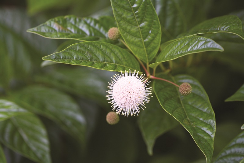 - Cephalanthus ‘Sugar Shack’. This compact plant has cool looking globe-shaped fragrant white flowers in summer that turn into beautiful red fall fruits. A dwarf variety with beautiful glossy foliage that is suitable for most type of soils. Height 100cm