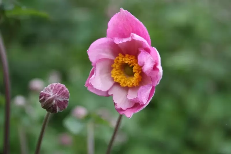 - Anemone x hybrida Bressingham Glow. Strong pink flowers from August to September. 100cm height