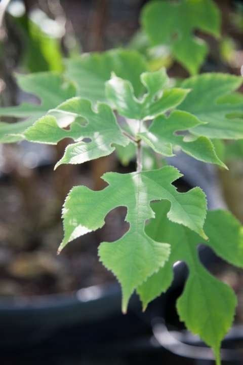 Broussonetia papyrifera We have held these in stock for a few years now and they have sold well. The Paper Mulberry has much to offer with the unusual lobed leaves, fluffy pink flowers and fruit that are just plain weird. Happy in most soils in a sunny position Broussonetia will reach 6m in height and 4m in spread.