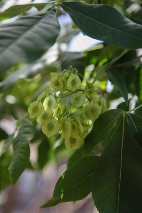 Ptelea trifoiata otherwise known as Hop Tree. Fragrant yellow flowers are produced in summers followed by attractive winged hop like fruit that persist late into the autumn. Happy in sun to partial shade in any soil that is well-drained and any pH. Height 6m. Spread 3m.