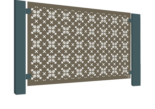Each pattern is available in either Aluminium finish which is warm grey in appearance or the warm coppery colour of Corten Steel which looks great with plants against it. Each panel uses the existing fittings: posts, clamps.