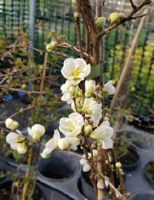 Nivalis. Probably my favourite flowering quince due to the pure white flowers. The large white flowers are produced in late winter / early spring and are followed by yellow quince like fruits.