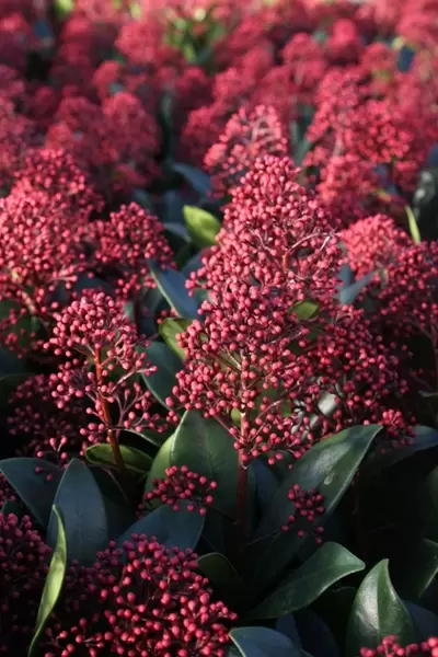 Rubella is probably the best known of the Skimmia options. Red buds in winter open to pink-white scented flowers. MALE