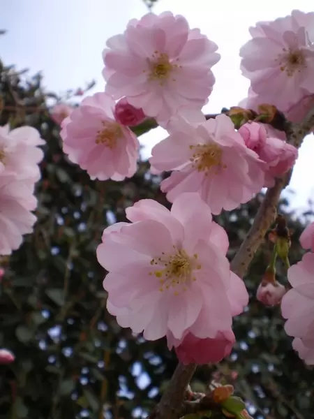 • Kanzan is one of the most popular choices due to the large double, rich pink flowers. An upright tree with erect branches