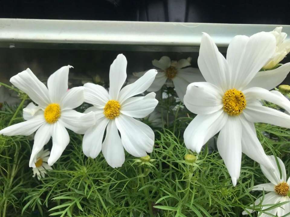 Cosmos in 3 colours – red, pink and white