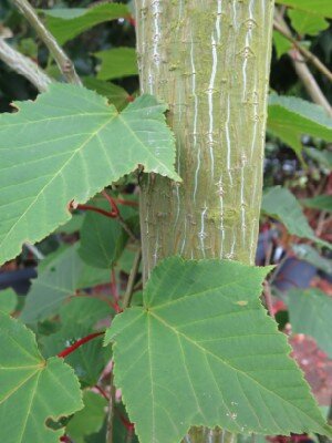 Snake bark Maple / Pere David's Maple / David's Maple Green and white striped bark and rich autumn colour. Height to 6 metres.