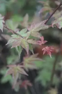 Japanese Maple Leaves with slender pointed lobes, brilliant red when young, turning green. Needs moist, but well drained soil. Best in a sheltered position.