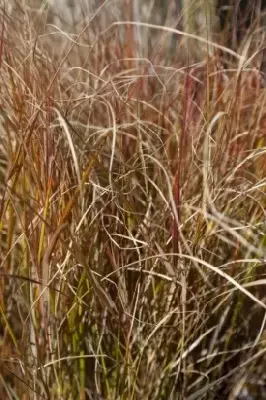 Stipa arundinacea Sirocco. Dense arching evergreen foliage which turns copper and pink in the autumn. Pendent panicales of pink flowers from midsummer to autumn. Height and spread to 50cm