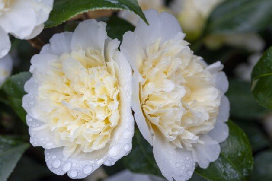 Camellia Brushfields Yellow There are many varieties of the popular evergreen Camellia each producing an abundance of showy flowers available in a wide range of colours, and all suitable for the border or woodland garden. Brushfields Yellow has an upright rounded habit with glossy dark green leaves. The cream flowers have a double centre with lightly ruffled pale yellow inner petaloid and are produced in late winter and early spring. Plant in partial shade in a sheltered site. Can tolerate full sun if soil conditions are good (rich in organic matter) but avoid position facing early morning sun as this will burn the flowers in the coldest winter/spring mornings. Reasonable tolerance of coastal conditions. Height and spread 3 x 4 metres, plant in Neutral / acidic soil, rich in organic matter and moisture retentive. It is a good idea to place mulch such as leaf-mould or bark around plants to keep roots cool and promote water retention.CAMELLIA japonica 'Brushfields Yellow'