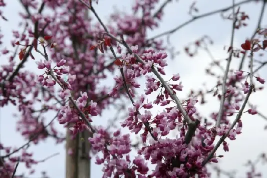 Eastern Redbud, Judas Tree An excellent large shrub / small tree with new foliage emerging vivid red- purple. The heart shaped foliage gradually changes to bronze with age and turns vivid red - yellow in autumn. Plant in sun where the sunlight will shine through the different purple coloured heart shaped translucent leaves. Pale pink pea like flowers are borne on bare stems in spring before the leaves emerge. Especially suited as specimen in a small garden. Full sun or dappled shade. Height 6m and Spread 5-8m. prefers Fertile, deep moist but well drained soil.Only 3 left