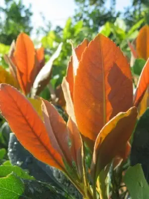 Loquat Dense growing evergreen shrub or small tree with exotic looking large glossy dark green leaves. The new growth is coppery bronze and most attractive. Fragrant white flowers in late summer are followed in the warmest locations and hot summers by a sweet edible fruit. Ideal for any garden with an exotic theme. Plant in full sun. Protection from the coldest weather recommended. Planting against a sunny wall would be ideal. Usually reaches about 3 metres x 4 metres but can reach up to 7 metres in suitable sunny and protected locations. Prefers free draining soil.ERIOBOTRYA 'Coppertone'