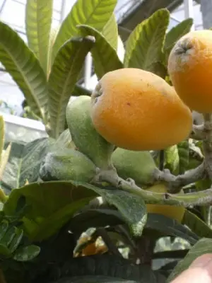 Common Loquat A vigorous spreading shrub with large, dark green leaves. May bear white flowers in autumn and winter. Can grow up to 4 metres.