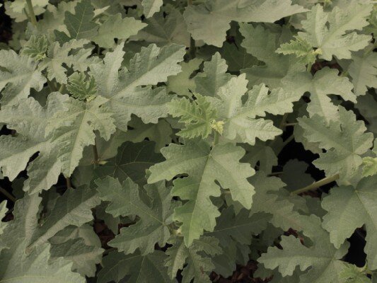 Afghan Fig Fast growing shrub, deeply divided leaves with a silver sheen. Can produce edible fruits in exceptionally hot summers. Skin irritant with sunlight. Height 5m.