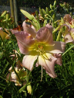 Daylily Extended blooming, evergreen perennial. Narrow foliage. Star-shaped, light lavender-pink flowers in mid and late summer. Moist, fertile soil in sun or light shade. Height 75 cm.
