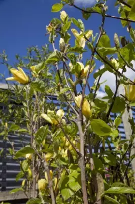 A small, compact, deciduous tree or shrub with light pink tulip-shaped flowers in mid to late spring. Height to 4m, spread to 2.5m
