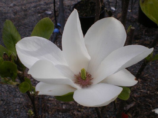 An upright shrub or tree with large, fragrant, white flowers slightly purple flushed at the bases. Dark green leaves.Height to 7m, spread to 5m.Only 2 left