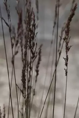 Purple Moor Grass A compact, tufted perennial grass which forms dense clumps. The narrow leaves are held erect and slightly arching. Dark purple flower spikes are borne in late summer on purple - red stems.