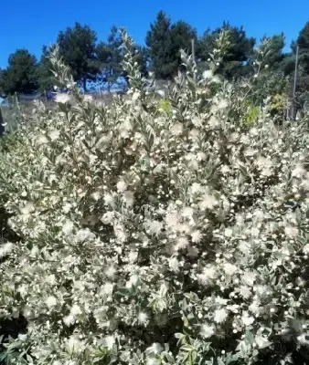 Variegated Myrtle A medium sized shrub with a bushy, rounded habit once established. Creamy-white variegation on the leaf edges and many attractive white flowers in July to August. Usually grows well in coastal areas. Height and spread 2m.