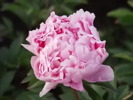 Large, fragrant, rose-pink double flowers with ruffled inner petals, they flower in early summer.