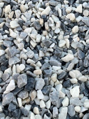 A mix of white and grey, angular chips of Limestone and Marble. Use in the garden for drives, rockeries, and borders.Only 2 left