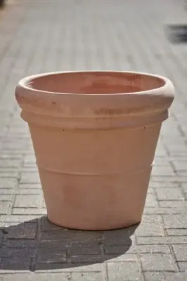 Italian machine made heavy rimmed pot. Perfect for olives, citrus and large shrubs. Ideal for exterior use. With drainage holes.
