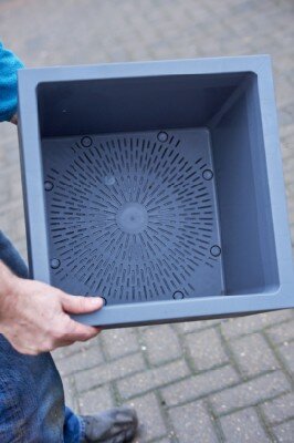 Millennium Pot Range uses high quality pigments so the colour is UV resistant. Each pot comes with an inbuilt water reserve. The water reserve consists of a grid and a removable cap underneath enabling use both inside and outside the house. Lightweight and made from recyclable materials.