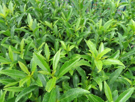 Evergreen shrub with narrow lance shaped, glossy leaves. The edges of the leaves are serrated. Compact and slow growing, good for Topiary workOnly 5 left
