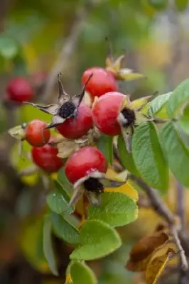 Deciduous rose with large single white blooms in summer. Orange-red large round fruits. Animal-proof prickly stems. Suits most soils in full sun. Prune hard in March. Suckering habit to a height of 2 metres. Ideal for hedging.Only 1 left