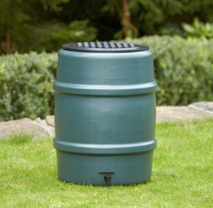 Traditional shaped water butt, ideal for collecting and storing rainwater. Made from polyproylene, 75% recycled material. Includes a lid and a twist flow tap. Please note the stand in the image is sold separately.Water Butt
